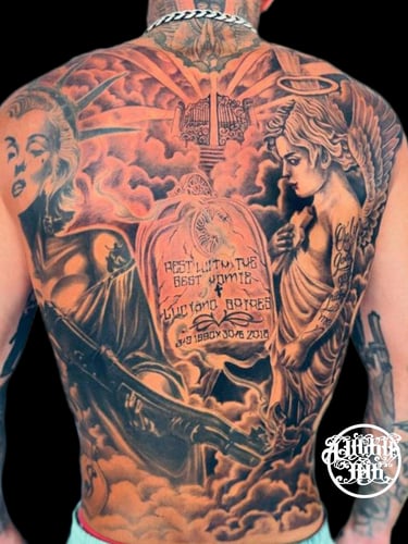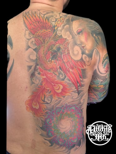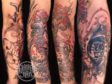 The session took about 1h of preparation and the tattoo took about 3h 15min I am very convinced of Joe, my tattoo artist. He has clarified incredibly precisely and hygienically correctly. We created a unique masterpice of art, which I will carry with pride all my life.